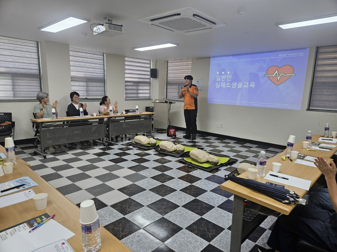 첫 번째 강의는 현직 소방관님의 "응급처치 및 심폐소생술" 교육을 실시했습니다.
